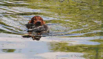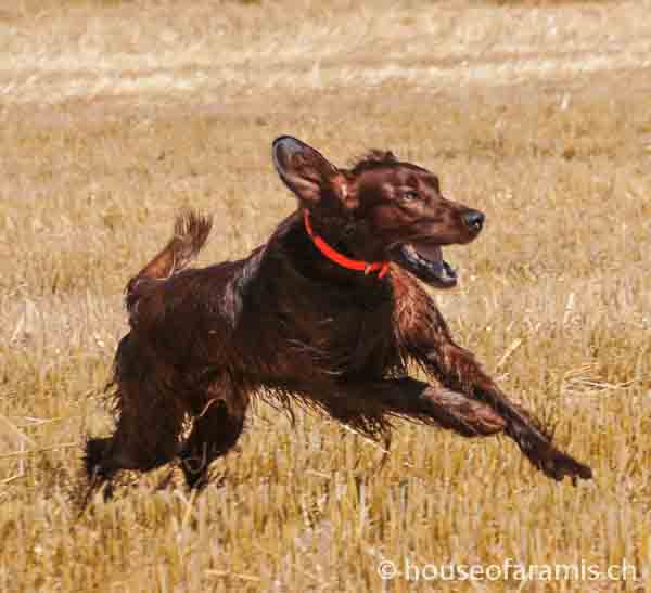 Auch Jerry musste seinen Beitrag dazutun. Durch den grossen Lerndruck blieb einfach zuwenig Zeit für unseren Grossen. Er verbrachte die Schulzeit immer wieder in einem grossen Setterrudel bei Freunden damit er auf seine Kosten kam und die Zeit unserer Intensiv- und Prüfungswoche konnte er bei seiner Lehrmeisterin in Bayern verbringen. Zur Belohnung durfte er anschliessend noch eine Woche mit nach Kroatien zur Niederwildjagd.