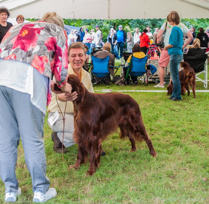 Jerry erhält ein V1 Antw. Dt.Ch. VDH und bekommt das CAC. Anschliessend gewinnt er das BOB und ist somit auch Landessieger Thüringen bei den Irish Settern.