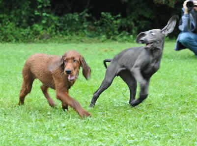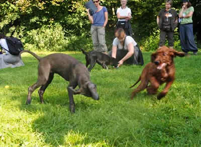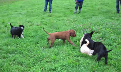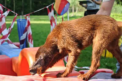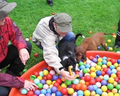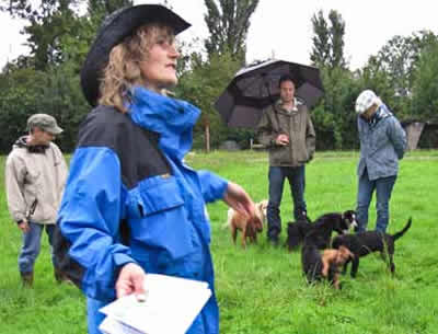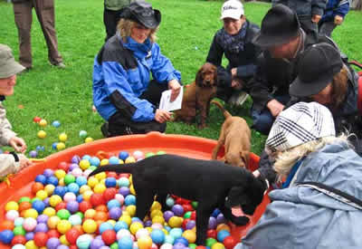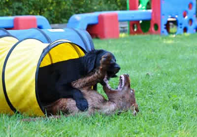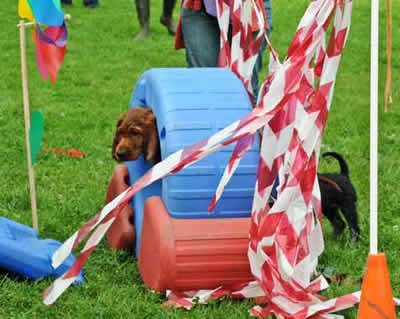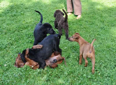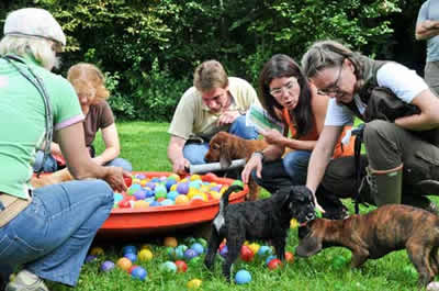 Das letztemal an der Welpenprägung mit 17 Wochen. Zum Abschluss regnet es noch einmal, nach den letzten fünf warmen und sonnigen Sonntagen. Nach dem heutigen Spieltag beginnt bereits die Junghundezeit.