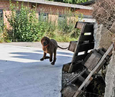 Huch, Herrchen ist verschwunden, schnell hinterher.